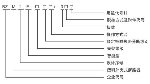 BZM1E系列智能可調式塑料外殼式斷路器(以下簡稱斷路器),適用于交流50Hz(或60Hz),其額定絕緣電壓為800V,額定工作電壓690V及以下,額定工作電流至800A的電路中作不頻繁轉換及電動機不頻繁起動之用。斷路器具有過載長延時反時限、短路短延時反時限、短路短延時定時限、短路瞬時和欠壓保護功能以及剩余電流保護(可選),缺相保護功能(可選),能保護線路和電源設備不受損壞,斷路器保護特性齊全、精確,能提高供電可靠性,避免不必要的停電,其中“Z、B”型控制帶有通訊接口,可進行“四遙”,以滿足控制中心和自動化系統的要求。