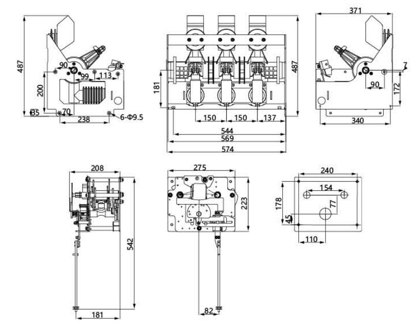 將機構安裝固定在開關本體上,用專用操作手柄插入到機構隔離操作軸,順時針旋轉約75°完成隔離合閘操作,逆時針旋轉約75°完成隔離分閘操作。